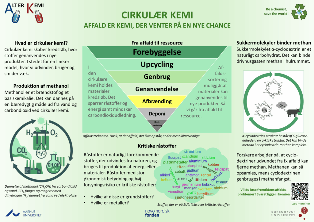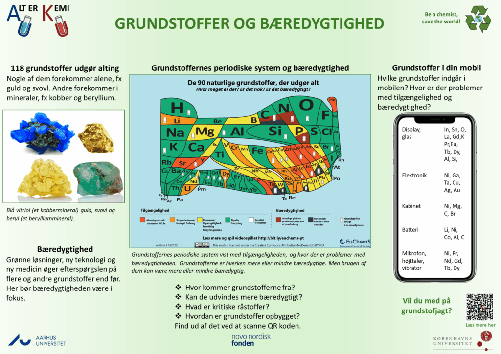 Til hvert tema har vi udviklet en poster. Den kan printes ud og hænges op, fx som udsmykning i/ved kemilokalet. Posters til print i fx A0, A1 eller A2, kan hentes som PDF fil her: