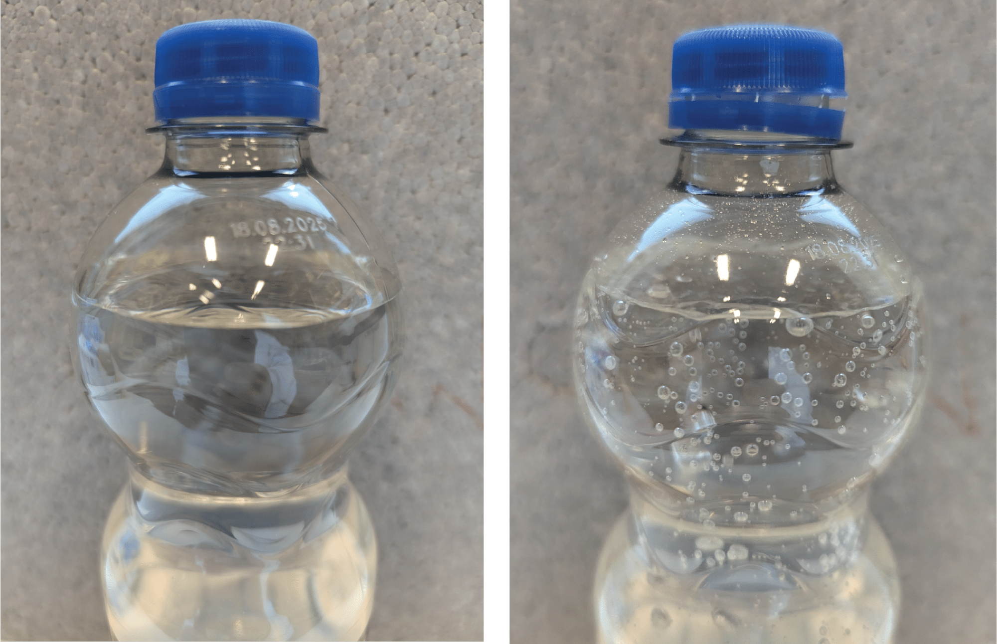 Har du lagt mærke til, at når du har en sodavand, som er uåbnet, så kan du ikke se CO₂-boblerne i sodavanden? Men så snart du åbner den, så kan du se boblerne (se figur 6). Den modsatte reaktion af reaktion (4) går i gang: