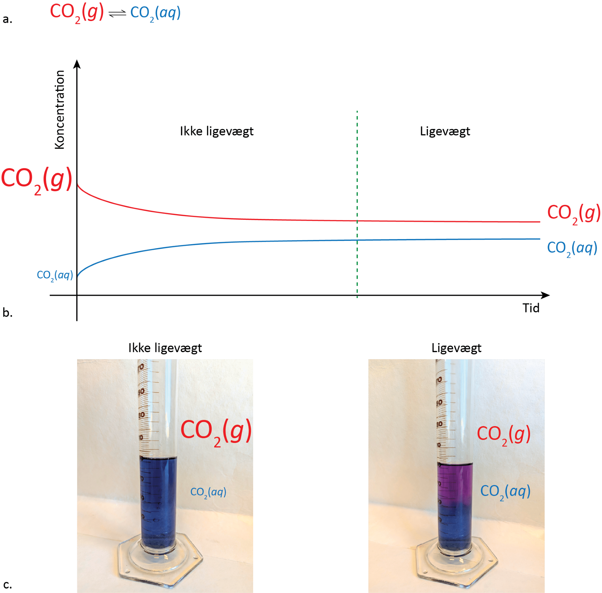 Selvom reaktionen går lige hurtigt i begge retninger, er koncentrationen af carbondioxid i luften og i vandet ikke den samme. Du skal nu regne på koncentrationen i luft og vand.