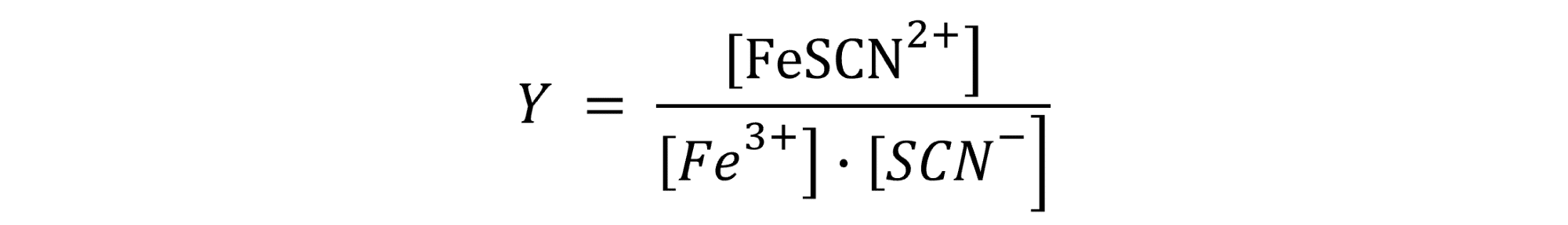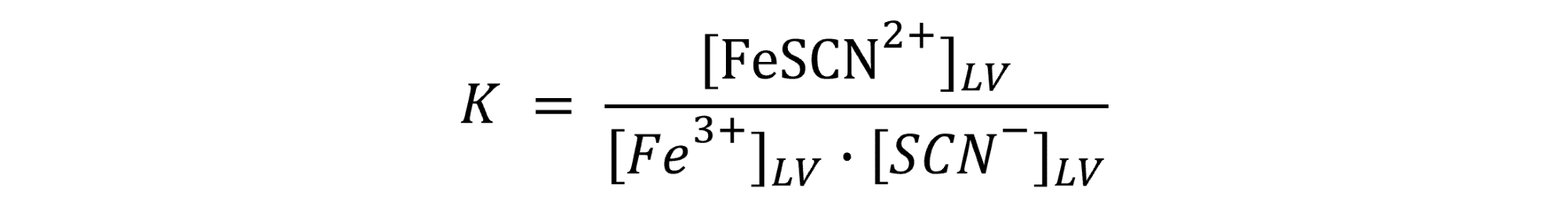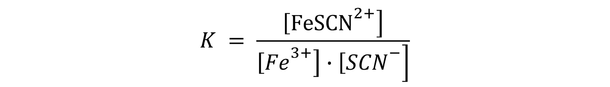 Der er to reaktanter og et produkt i ligevægt (12). For at opskrive reaktionsbrøken for denne ligevægt skrives [FeSCN2+] i tælleren, og produktet af reaktanterne, [Fe3+] og [SCN–] i nævneren: