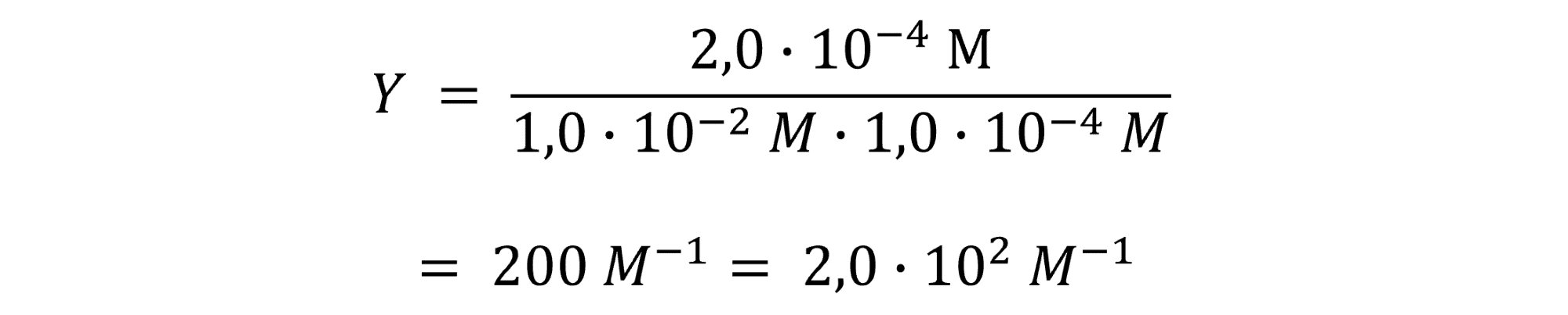 Da alle koncentrationer har enheden M, vil der i brøken stå M i tælleren og M∙M i nævneren. Enhederne kan forkortes, så der står: