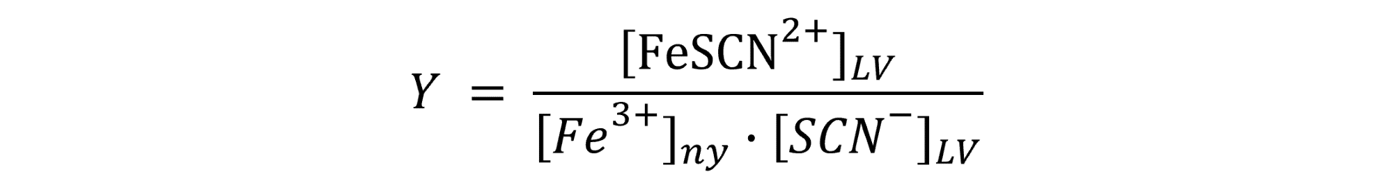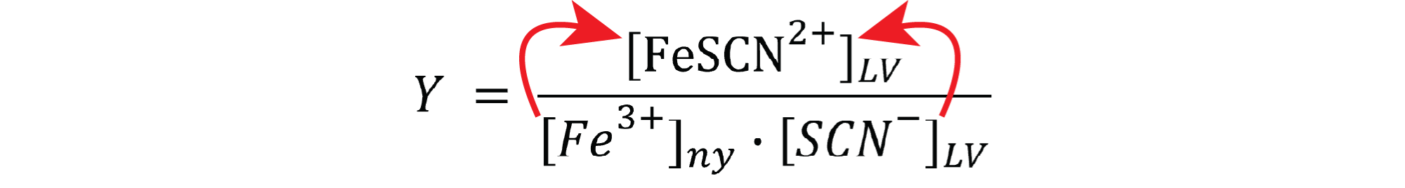 [Fe3+]ny er højere end [Fe3+]LV, fordi vi har tilsat ekstra af denne reaktant. Da værdien af nævneren derfor er større, bliver værdien af Y mindre end K, fordi du deler med et større tal.