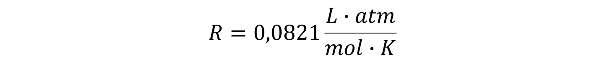 p er gassens tryk i atm, V er gassens volumen i L, n er stofmængden af gassen i mol, T er gassens temperatur i K, og R er en proportionalitetskonstant kaldet gaskonstanten. Den har samme værdi for alle gasser: