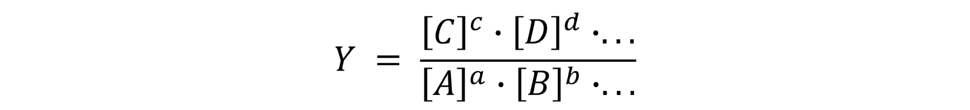 I reaktionsbrøken (Y) står den aktuelle koncentration af produkter i tælleren, og den aktuelle koncentration af reaktanter i nævneren: