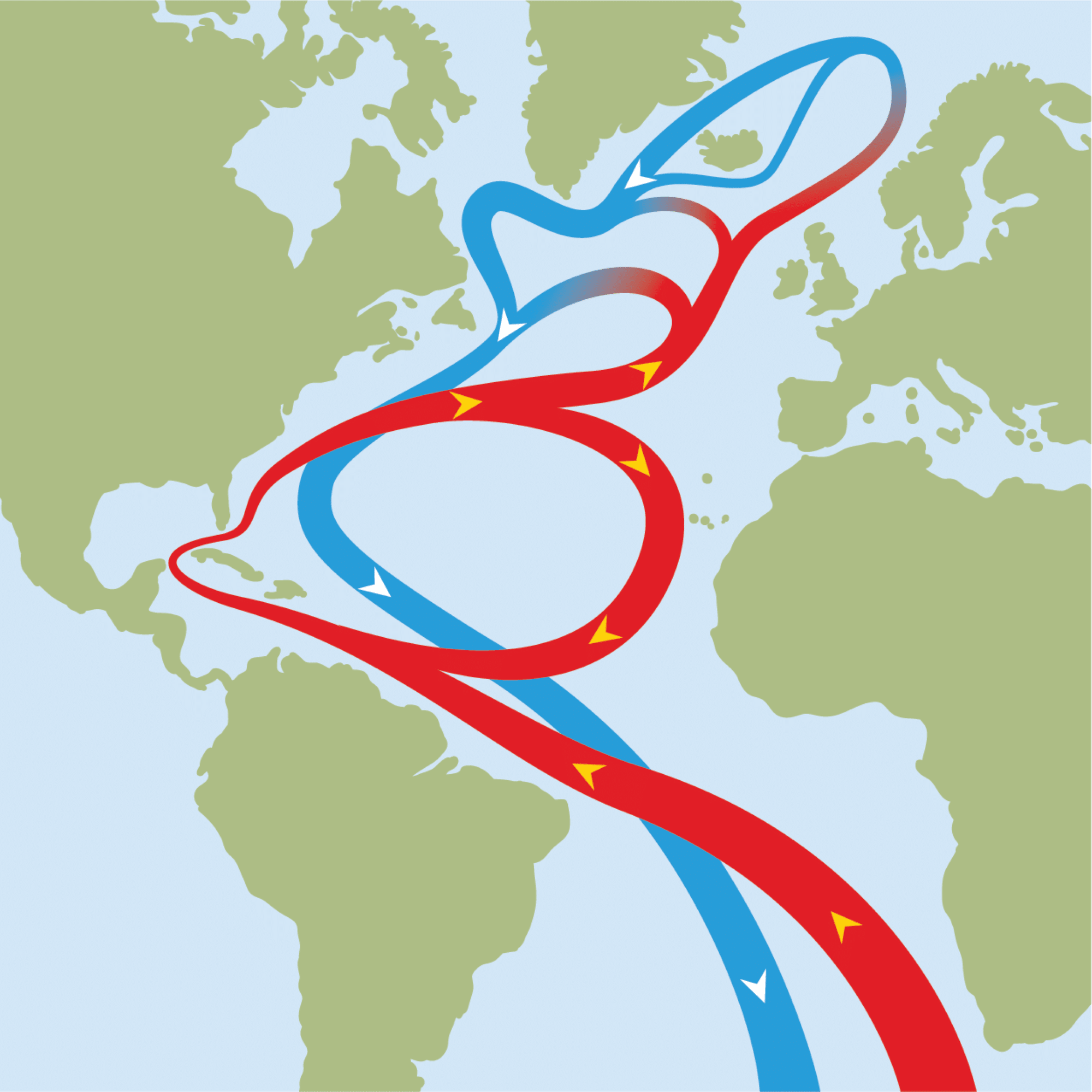 Det varme overfladevand i Golfstrømmen strømmer fra ækvator mod den nordvestlige del af Europa og er blandt andet med til at holde luft- og havtemperaturen oppe i vores del af verden. Når det varme overfladevand efterhånden afkøles mod nord, opløses mere og mere carbondioxid deri. Samtidig gælder det, at koldt vand er tungere end varmt vand, og det synker derfor til bunden mod dybhavet og påbegynder en meget langsom vandring gennem kredsløbet tilbage mod ækvator. Når vandet igen varmes op ved ækvator, vil carbondioxidet igen frigives til atmosfæren. Men fordi det tager lang tid for det kolde vand med den høje carbondioxidkoncentration at nå ækvator, fungerer havet som et slags midlertidigt lager af carbondioxid. Faktisk har man estimeret, at havet gennem dette kredsløb har optaget op mod 25% af det menneskeskabte carbondioxid siden industrialiseringen.