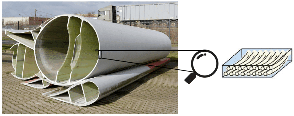Se ovenstående YouTube video ( 3:45 min). Mange vindmøllevinger ender deres dage ved at vindmøllevingerne simpelthen bliver gravet ned, i stedet for at blive genbrugt i nye vindmøllevinger. Det kaldes affaldsdeponi, og er nederst i affaldstrekanten, se figur 2 i cirkulær kemi. Hvis ikke der findes en løsning på genbrug af vindmøllervinger, vil vi globalt have ophobet mindst 43 millioner tons vindmøllevinge-affald i 2050!