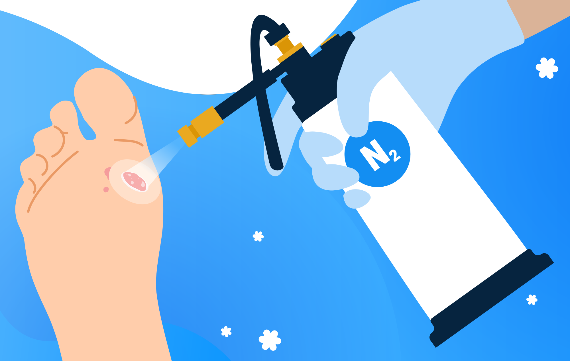 Flydende nitrogen bruges til at opbevare biologiske prøver meget koldt, fx sædceller, ægceller og væv, fordi den lave temperatur stopper alle biologiske processer. Måske har du som i figur 4 også prøvet at få fjernet en fodvorte hos lægen, hvor de har brugt flydende nitrogen.